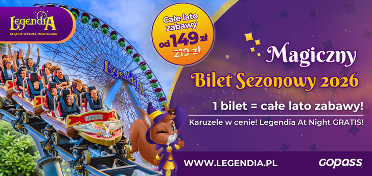 Nie ważne, ile masz lat. W Legendii każdego dnia możesz poczuć się, jak dziecko oraz spędzić czas w prawdziwie rodzinnej atmosferze, w pięknym otoczeniu zieleni. Jeżeli kochasz Lech Coastera, uwielbiasz płynąć z nurtem Doliny Jagi, a Mieszko i Dobrusia to najlepsi przyjaciele Twojego dziecka, już dziś skorzystaj ze specjalnej oferty i kup Magiczny Bilet Sezonowy, z którym atrakcje Legendii i jej bajkowych mieszkańców będziesz mieć na wyciągnięcie ręki każdego dnia sezonu.