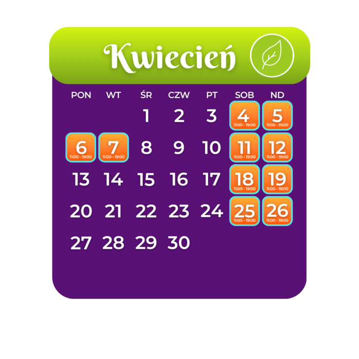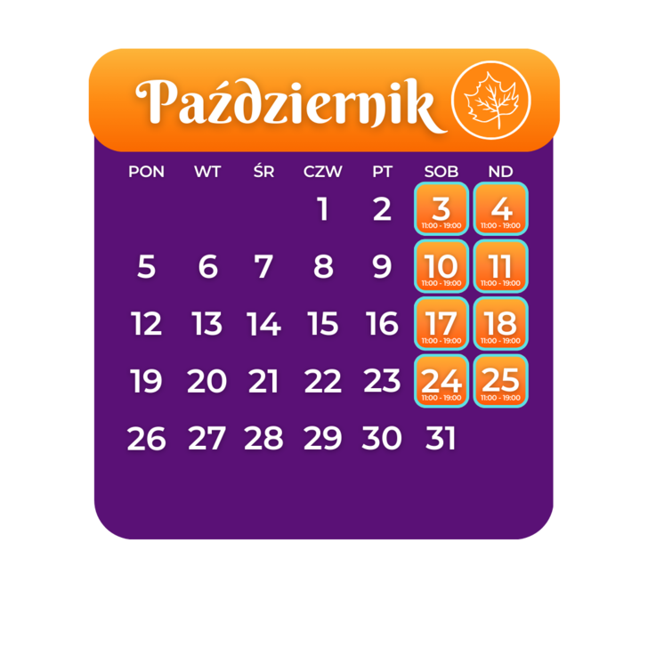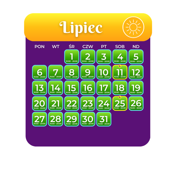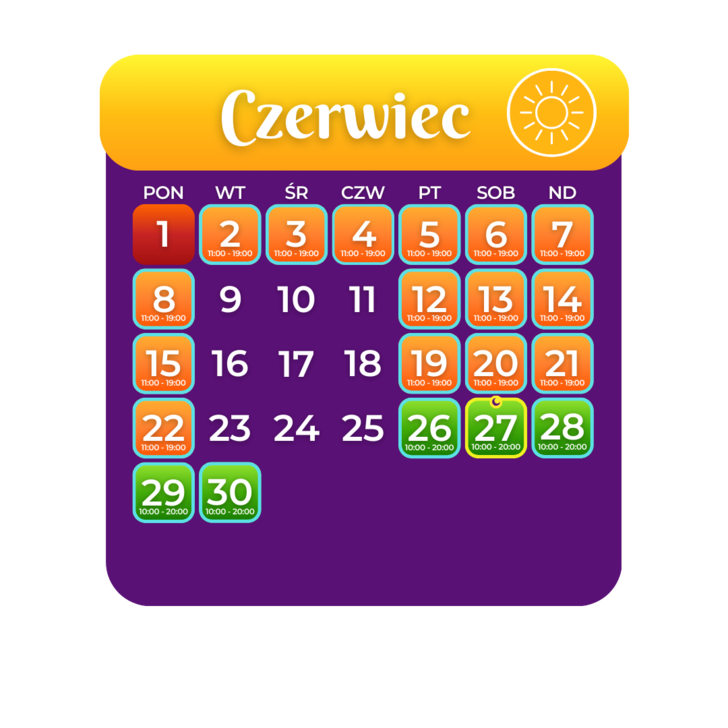Planując wizytę w naszej krainie magicznej zabawy koniecznie zapoznaj się z kalendarzem otwarcia.