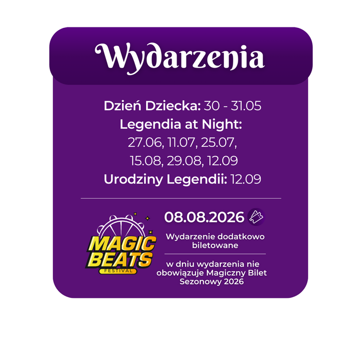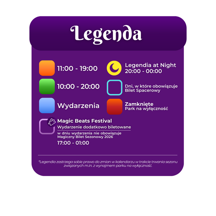 Legendia zastrzega sobie prawo do zmian w kalendarzu w trakcie trwania sezonu związanych m.in. z wynajmem parku na wyłączność.